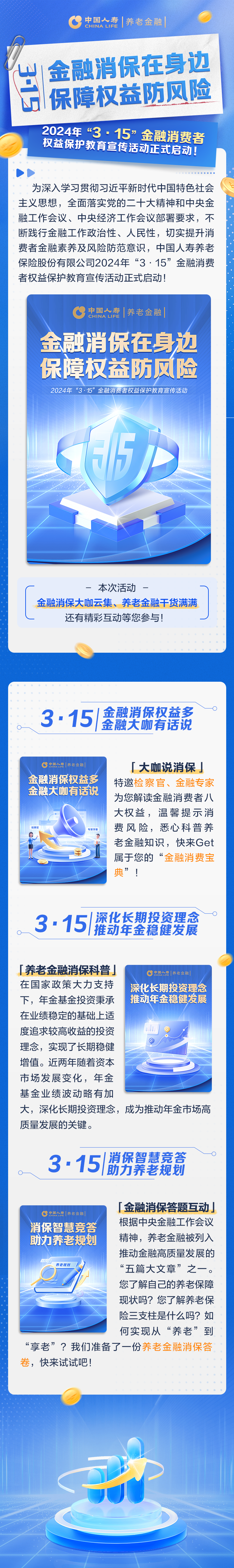 中國人壽養(yǎng)老險2024年“3·15”金融消保教育宣傳活動正式開啟!